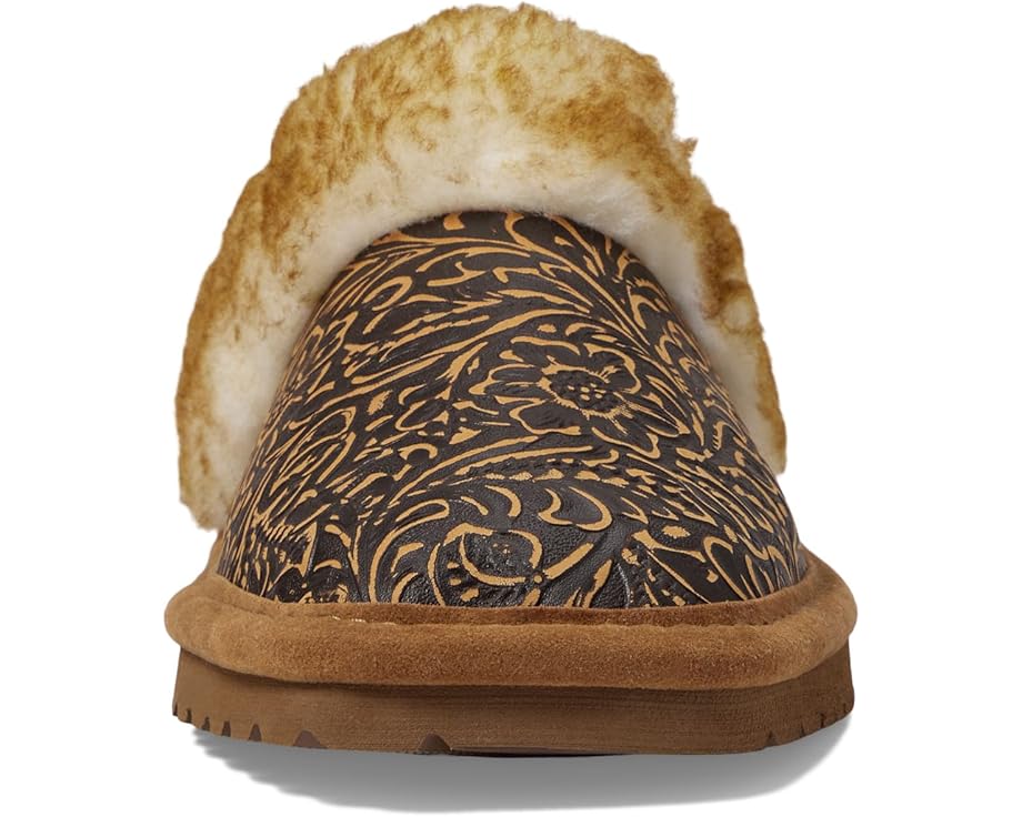 - Look forward to laid-back days in the cozy Ariat® Jackie Exotic-Embossed Tooling slippers. Featuring a slip-on style, square toe silhouette, embossed detailing on the vamp, and branding patch along collar in front.