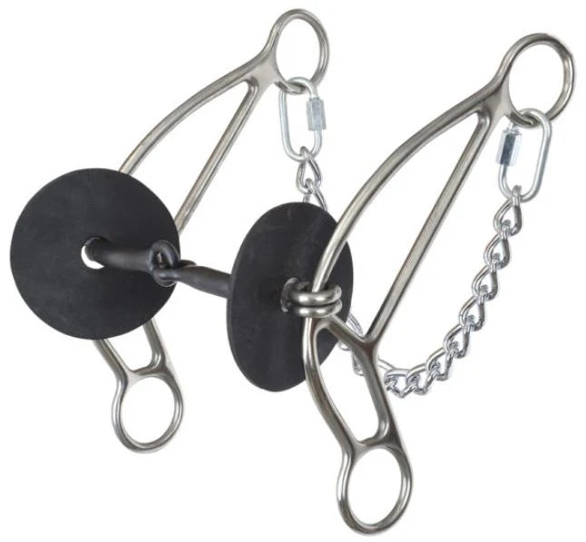 The Josey Short Shank Banana Gag Bit features 7 1/2″ cheeks and a 5 1/2″ mouthpiece made from smooth 3/8″ sweet iron. Its 2-piece design offers a gentle, delayed response that encourages your horse to relax and flex at the poll. Perfect for beginner and intermediate horses, this bit helps build better communication during practice while adding a little extra bend. For even more flexion, try the Josey Banana Short Shank Gag and watch your horse respond with ease and a happy attitude!