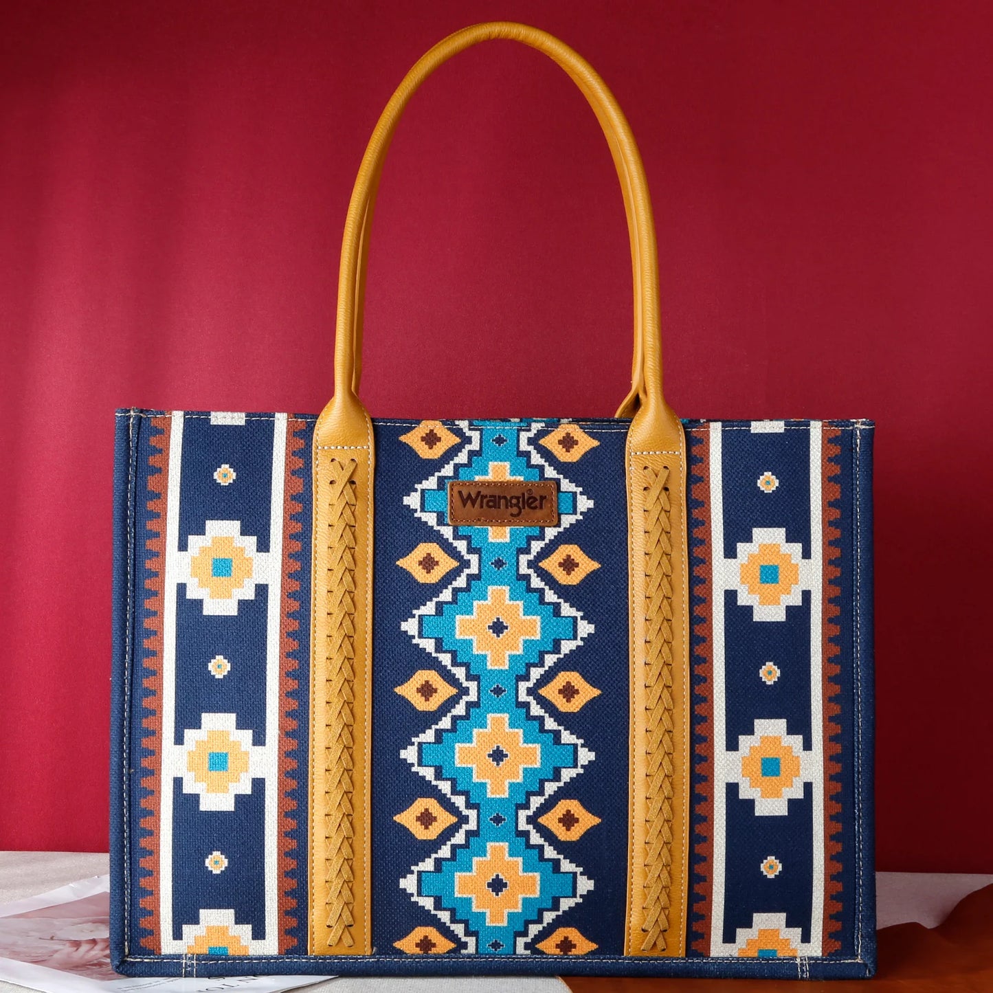 Wrangler Southwestern Pattern Dual Sided Print Canvas Wide Tote Mustard
